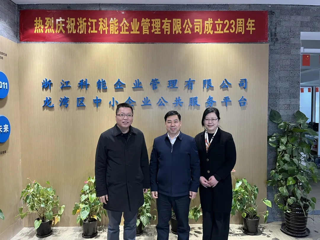 2022年2月8日下午,九三学社温州市委主委马永信、专职副主委胡晓霞一行莅临浙江科能开展新春走访调研,公司董事长叶剑淼热情接待。马永信主委一行在叶剑淼董事长的引导下参观了公司办公区,并在会议室座谈。叶